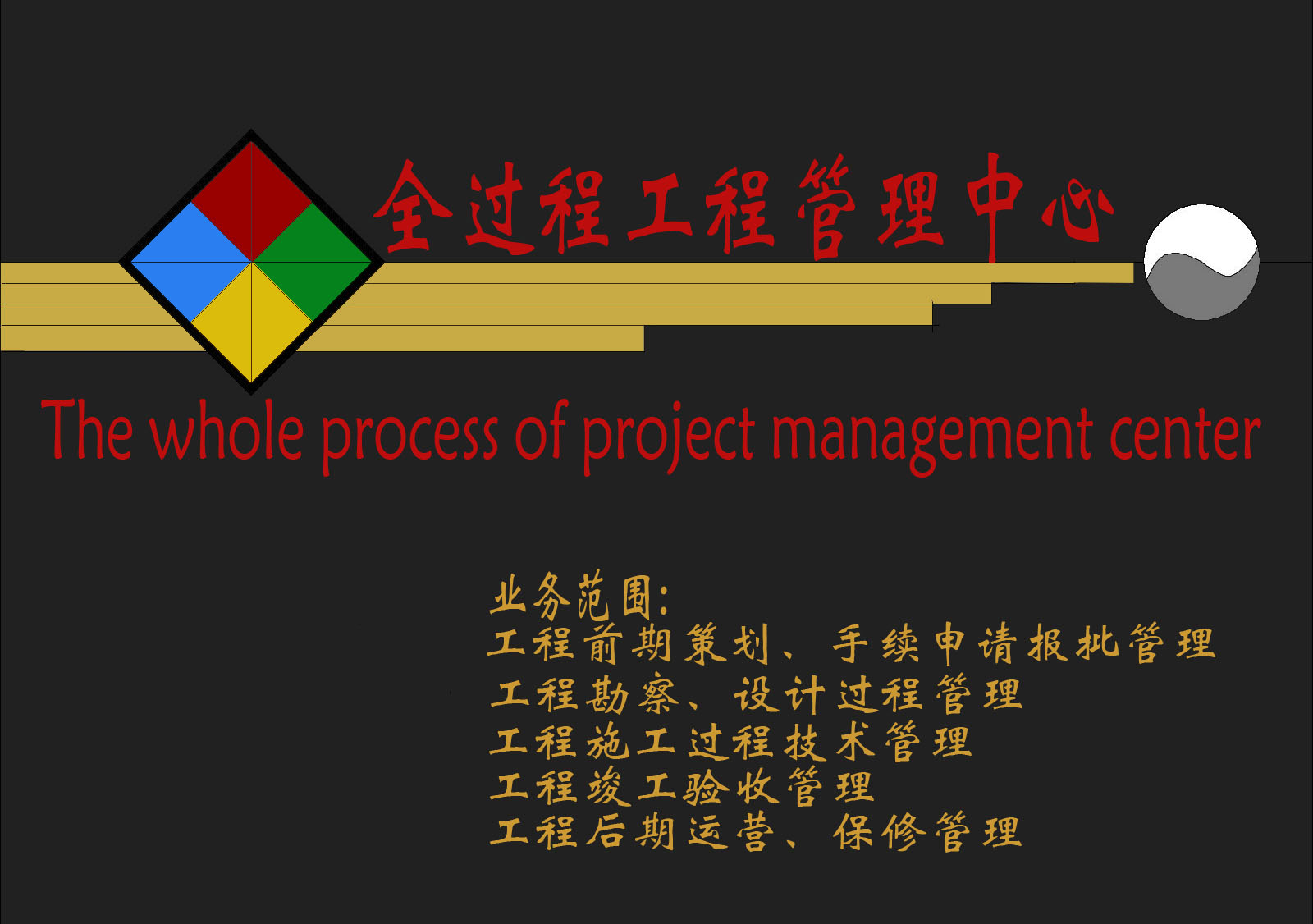 ●業(yè)務(wù)范圍:為甲方提供工程項目全過程咨詢服務(wù),包括:前期項目建議書、可行性可研報告的編制、項目實施總體策劃、報批報建管理、合約管理、地質(zhì)勘察管理、規(guī)劃和設(shè)計各個環(huán)節(jié)管理、工程監(jiān)理、施工過程的技術(shù)支持、招標(biāo)代理、造價控制、驗收移交、后期運營和維護技術(shù)支持等。